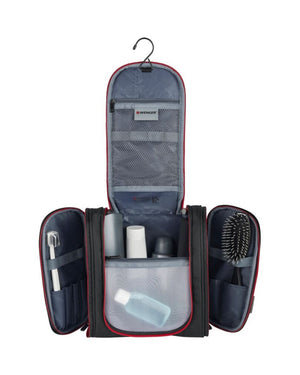 Clever packing equates to maximizing space and selecting innovative luggage and travel accessories. Meet our Hanging Toiletry Kit. Smart in organization, it houses elastic loops to secure bottles of body wash or lotion, plus a lined zippered pocket for your skincare go-to items. Water-resistant with hanging hook and antibacterial lining, it helps you stay super fresh around the globe.