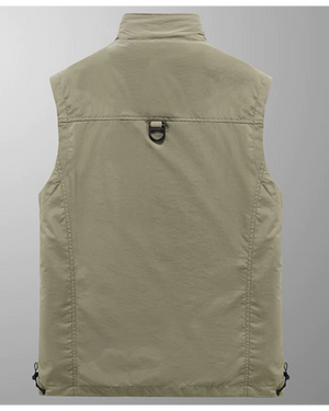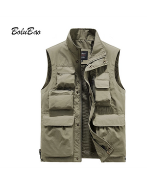 Men Outdoor Vest Multi-Pocket Solid Color Fishing Director Reporter Work Waistcoat Photography Casual Vest Jacket Male