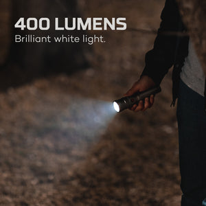The FRANKLIN™ TWIST by NEBO is a powerful rechargeable handheld flashlight and work light with 3 light modes. The TWIST features an ARCUS COB LED ring that acts as a task light or lantern and the powerful LED chip in the flashlight can shine up to 89 meters away. The included battery allows for up to 26 hours of operation in between charges.