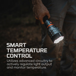 The DAVINCI® 18000 is the pinnacle product to NEBO’s DAVINCI® rechargeable flashlight series and is the brightest to date with 18000 lumens making it perfect for camping, hiking, hunting, fishing or other outdoor activities. It is a rugged, yet refined design and includes our latest smart technology features like Optimized COB, Smart Power Control (SPC), Smart Temperature Control (STC), Direct-to-Low Startup and our proprietary Mag Dial to quickly and easily select and power up in the light mode of your choice.