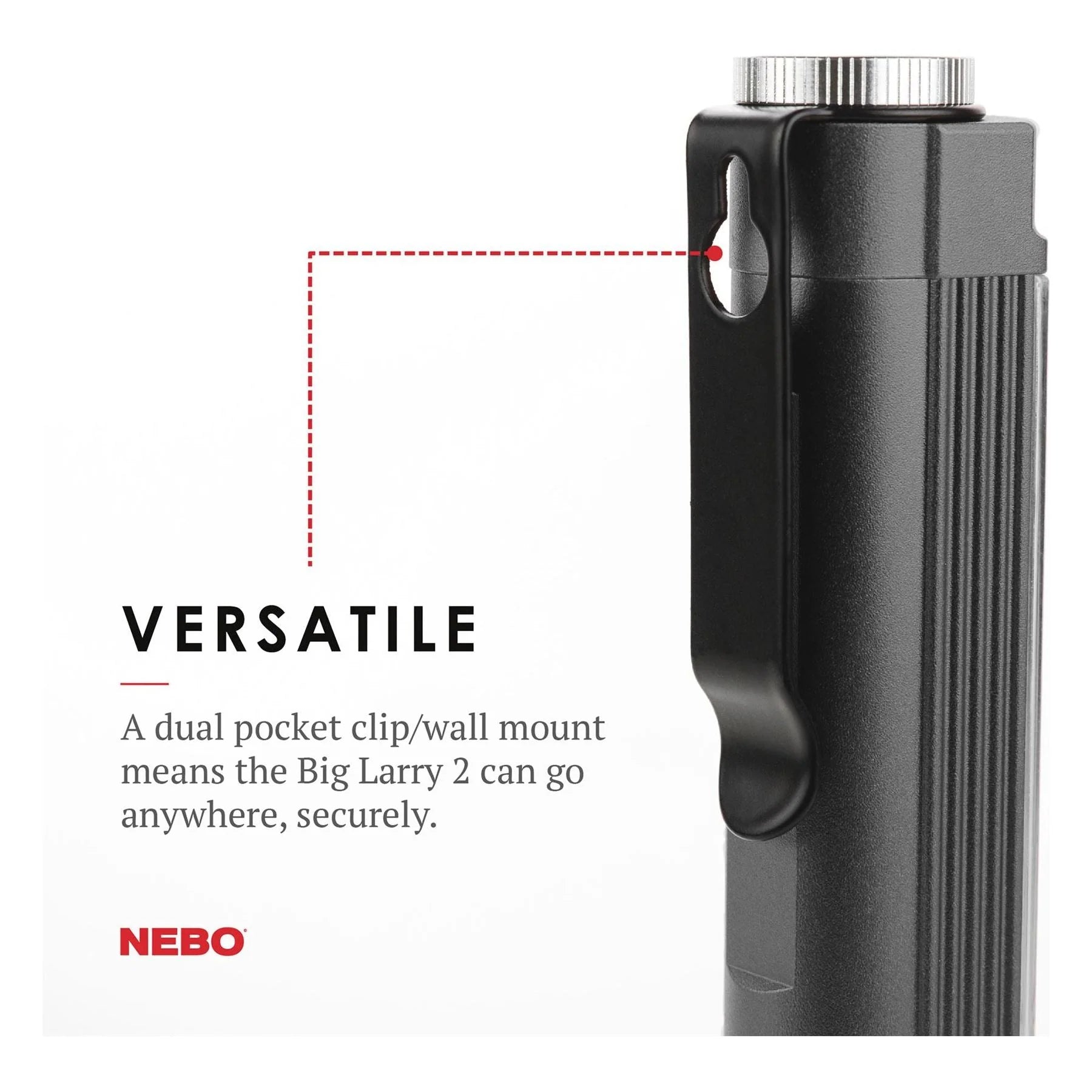Big Larry Pro RC Counter Display The brightest Larry yet...The BIG Larry PRO features a high-power, 500 lumen COB work light and red hazard flasher. Fully rechargeable and equipped with 2 magnetic charging stations, the BIG Larry PRO is ready to handle any task at any time. The PRO also has a powerful magnetic base and adjustable steel clip for convenient hands-free lighting. When there is work to be done...bring a PRO 3 Light Modes HIGH - 500 lumens, 4.5 hour runtime, 37 meter beam Dimmable down to 120 lumens, 15 hour runtime Red - 45 lumens, 8 hour runtime, 13 meter beam Dimmable down to 10 lumens, 30 hour runtime Red hazard flasher - 24 hour runtime, 13 meter beam Dimmable down to 10 lumens, 30 hour runtime Design Fully dimmable Direct-to-Red Anodised aircraft-grade aluminium water and impact-resistant Adjustable clip Powerful magnetic base Operation Top-positioned, ON/OFF button Accessories Two magnetic charging stations and cables Batteries Powered by 1 Li-ion rechargeable battery included (Recharge time: 5 - 6 hours) Specification Height: 197 mm Diameter: 35 mm Weight: 215g