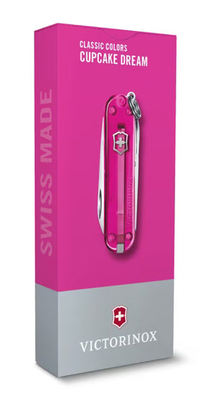 Description Reviews Manufacturer Victorinox Part Number 0.6223.T5G Product Dimensions 5.8 x 1.8 x 0.9 cm; 21 g Item model number 0.6223.xxxG Colour Cupcake Dream Power Source Hand Powered Item Package Quantity 1 Number of Pieces 1 Included Components Classic SD, Cupcake Dream Batteries Included? No Batteries Required? No Item Weight...