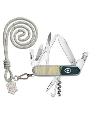 Victorinox – 91 mm 1. Big blade2. Nail file with3. - nail cleaner4. Corkscrew5. Package opener with6. - small screwdriver7. Bottle opener with8. - screwdriver9. - notch electric wire10. Reamer punch11. Stainless steel ring12. Scissors13. Multipurpose hook14. Toothpick15. pincette16. Pressurized ballpoint pen