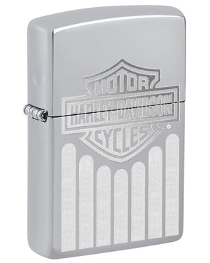 This classic High Polish Chrome lighter features the Harley-Davidson® logo in a stunning combination of our Lustre and Color Image processes. Comes packaged in a gift box. For optimal performance fill with Zippo lighter fuel.