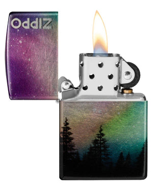 A stunning aurora sprawls and swirls around all surfaces of this mesmerizing 540 Fusion lighter, anchored by a stoic treeline. The Zippo logo adorns the lid in tumbled chrome tones for subtle contrast. Comes packaged in a gift box. For optimal performance, fill with Zippo lighter fuel. Genuine Zippo windproof...