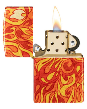 Flickering flames dance around every surface of this dazzling 540 Fusion lighter, which incorporates shimmering brass tones into the fiery design. Comes packaged in a gift box. For optimal performance fill with Zippo lighter fuel. Genuine Zippo windproof lighter with distinctive Zippo "click" All metal construction; windproof design works virtually...