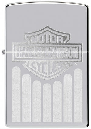 This classic High Polish Chrome lighter features the Harley-Davidson® logo in a stunning combination of our Lustre and Color Image processes. Comes packaged in a gift box. For optimal performance fill with Zippo lighter fuel. Genuine Zippo windproof lighter with distinctive Zippo "click" All metal construction; windproof design works virtually anywhere...