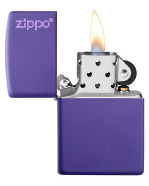 This purple matte windproof lighter is adorned with the classic Zippo logo. Comes packaged in a gift box.