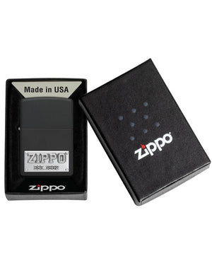 Grab this Black Matte lighter before you hit the open road. The sleek chrome emblem mimics a license plate featuring your favorite brand and our founding year. Comes packaged in a gift box. For optimal performance, fill with Zippo lighter fuel.