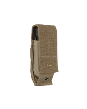 Our MOLLE sheath, pronounced “Molly,” is made of durable ballistic nylon and features a hook-and-loop closure and a snap webbing strap for attachment on the back. MOLLE, which stands for Modular Lightweight Load-carrying Equipment, is used to attach your multipurpose tool to backpacks, load-bearing vests and other gear so you can access your Leatherman on the go.