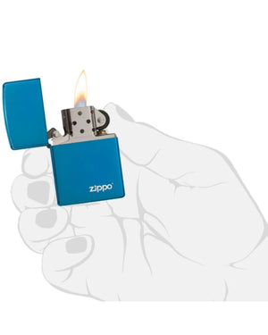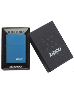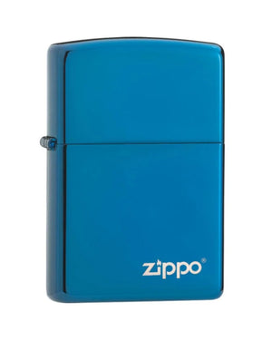 - This High Polish Blue lighter has the Zippo logo laser engraved in the corner. Comes packaged in a gift box. For optimal performance, fill with Zippo lighter fuel.