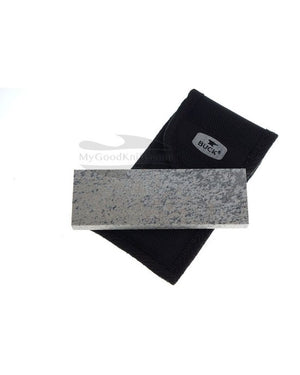 The Buck Arkansas Soft Honing Stone helps keep your knife razor-sharp. Whether you own a pocket knife, a hunting knife, or a kitchen knife. The honing stone has fine grit and comes with a nylon sheath. It's 4.38" long, 1.5" wide, and .62" thick.