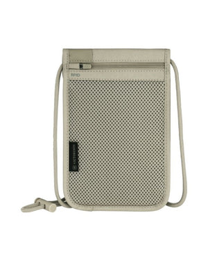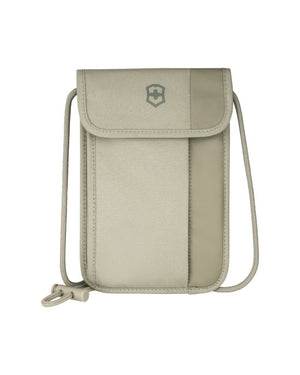 The Travel Essentials Security Neck Pouch offers RFID-blocking and an antimicrobial lining for secure, hygienic transport of personal items. Its light build is ideal for various travel scenarios. Options include Black and Sand Beige