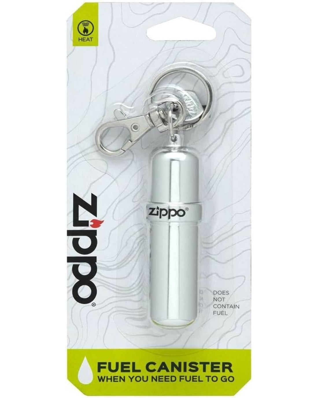 Take along an extra refill of Zippo premium lighter fluid. Reusable personal-sized aluminum canister holds enough fuel to fill one Zippo lighter.Includes swivel snap fastener.Split ring for keys. Disk to tighten and loosen flint screw.Rubber storage sleeve for 2 extra Zippo flints.NOTE: Can not be taken on airplane. Product Dimensions...