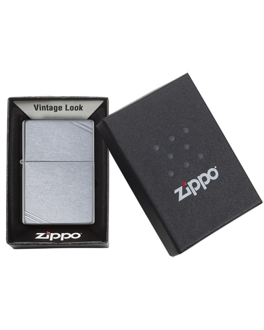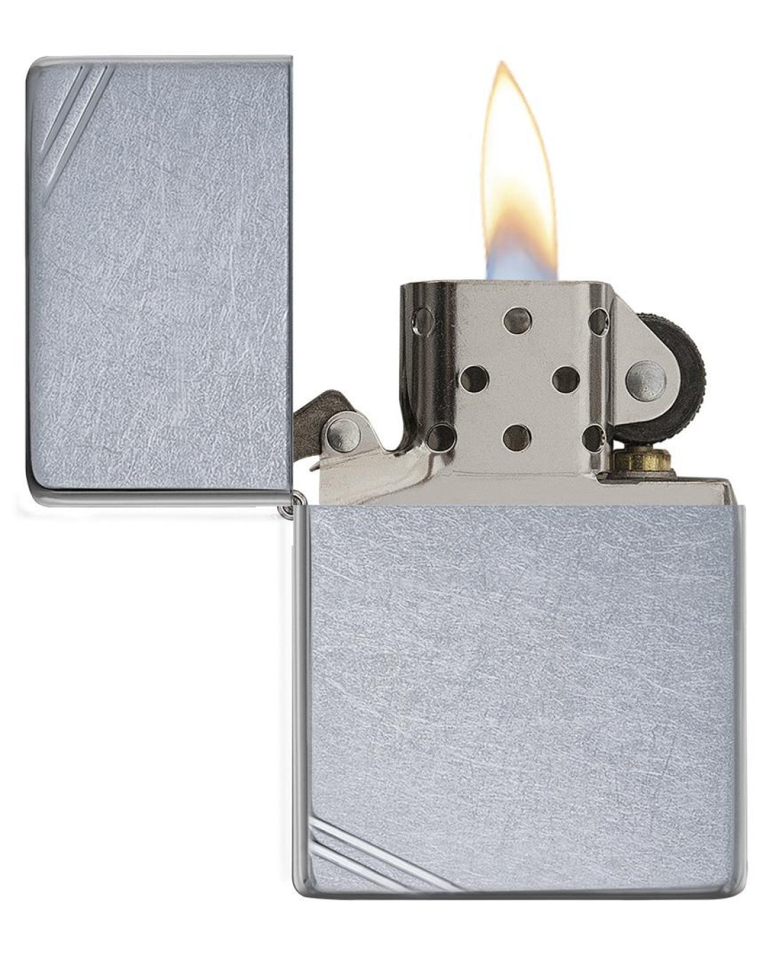 This Street Chrome™ lighter features decorative slashes at the corners of this lighter