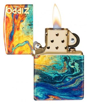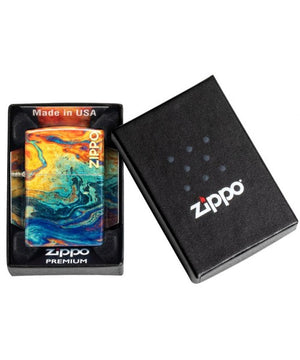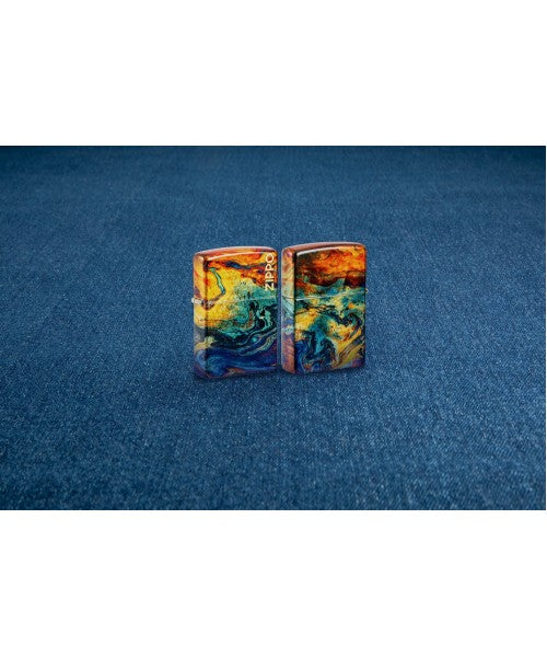 This mesmerizing 540 Fusion lighter mimics the dazzling canyons and caves of the American Southwest. Layers of color seamlessly flow around all sides of the piece while the Zippo logo adds subtle contrast to the organic design. Comes packaged in a gift box. For optimal performance, fill with Zippo lighter...