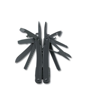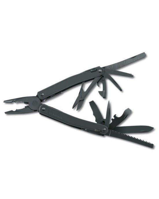 .     Needle-Nosed Pliers 2.     Wire Cutter for Thin and Soft Wire up to 40 HRC 3.     Blade, Large 4.     Phillips Screwdriver 1 – 2 5.     Reamer, Punch 6.     Multipurpose Hook 7.     Can opener 8.     Screwdriver 3 mm 9.     Bottle Opener 10. Screwdriver 6 mm 11. Crate Opener 12. Wire Bender...